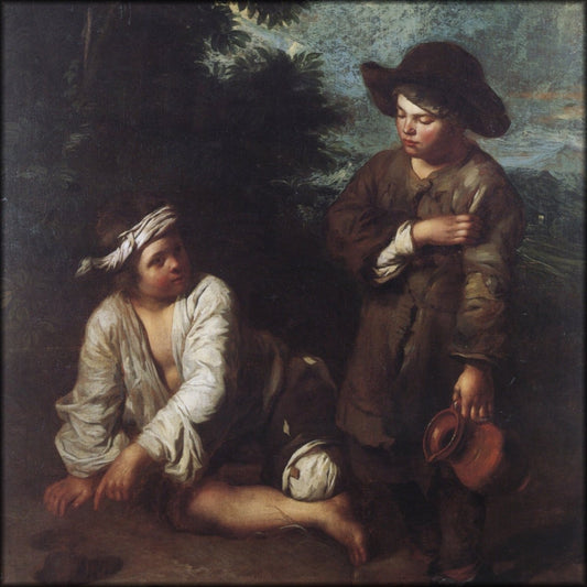 Villavicencio, Pedro Nunez de (1635-1695) - Two Boys Feeding a Poor Boy 1670s