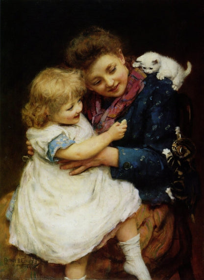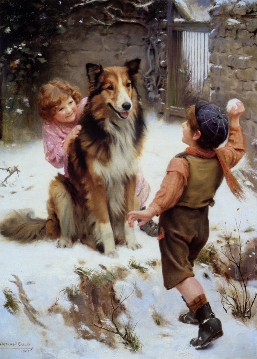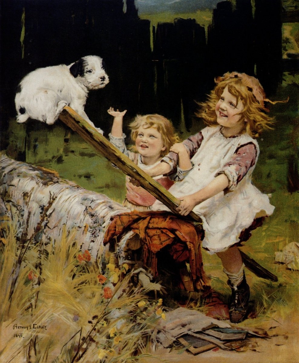 Arthur John Elsley (1860-1952) was an English painter of the late Victorian and Edwardian periods, famous for his idyllic genre scenes of playful children and their pets. He achieved great popularity during his life and much of his work appeared in calendars, magazines and books.