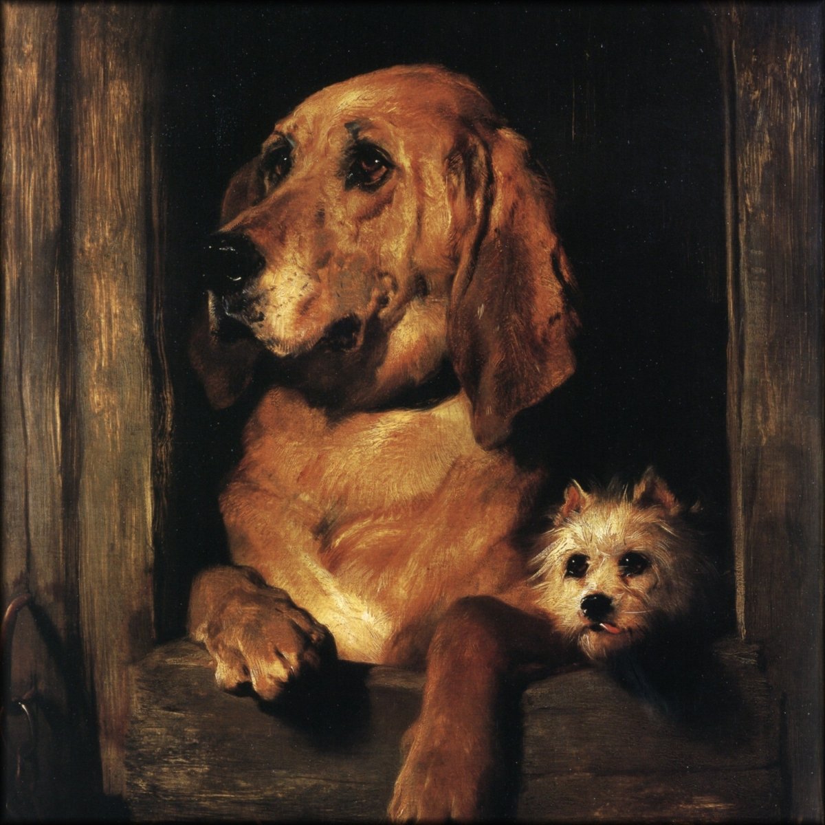 Well-observed portrait of two dogs by animal artist Edwin Landseer.